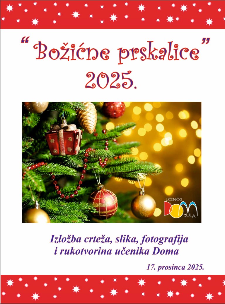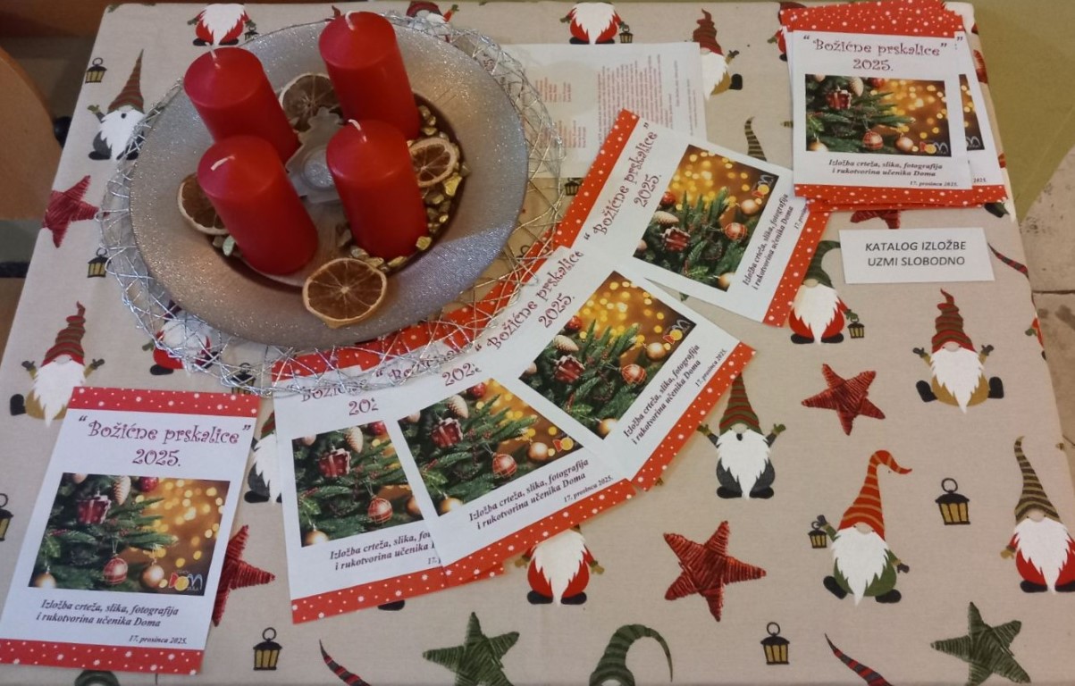 Predbožićna je atmosfera u domu. Nije to samo okićena jelka i bezbroj lampica. Kraj je prvog polugodišta, u školama su ispiti svaki dan, intenzivno se uči, priprema, nadoknađuju zadaće koje su se odgađale sve dok se moglo. A i grad sve jače mami svojim adventskim sadržajima; posebno je zanimljivo klizalište u Areni. Uz sve to, u domu je vrlo živo i aktivno. Sekcije u kulturi intenzivno su se pripremale za izložbu “Božićne prskalice” i priredbu za susret s razrednicima, što se u domu održava već godinama.