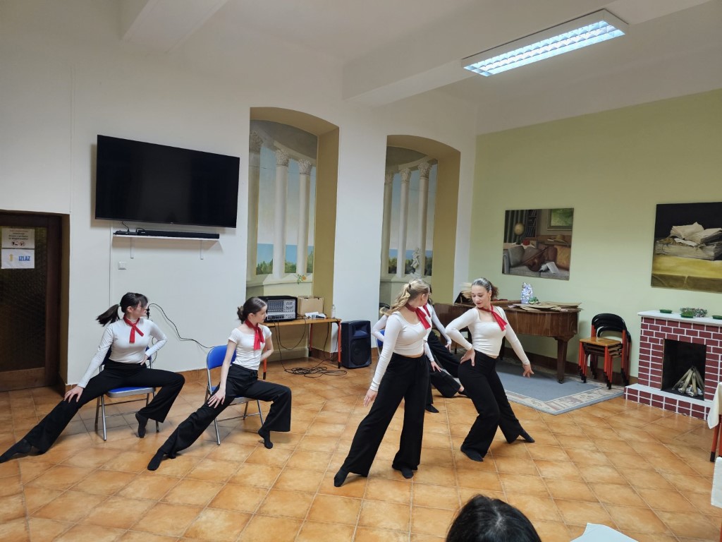 Dočekala ih je naša glazbena sekcija uz nekoliko uspješno izvedenih glazbenih točaka, koje su pripremili pod vodstvom odgajatelja Mirana Ribarića. Program je nastavljen plesnom točkom “Posljednji ples” te dramskom “Zia da Milano”, koju je s učenicima pripremila odgajateljica Larisa Simić Seidel.